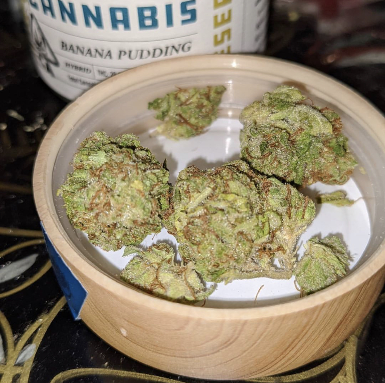 Banana Pudding is a hybrid strain that combines the best qualities of its Indica and Sativa parents. This well-balanced strain delivers a harmonious blend of relaxation and mental stimulation, making it a popular choice for a wide range of users. The strain’s THC content typically ranges from 18% to 22%, providing a potent yet manageable high that is perfect for both recreational and medicinal purposes.One of the standout features of Banana Pudding is its unique flavor profile. As the name suggests, this strain emits a delightful aroma and taste reminiscent of freshly baked banana pudding, with subtle notes of vanilla and creamy undertones. This delectable combination creates a truly enjoyable and satisfying smoking or vaping experience.In terms of its effects, Banana Pudding is known to provide a well-rounded and versatile high. Users often report feeling a sense of calm and relaxation, accompanied by a gentle uplifting and cerebral effect. This makes the strain suitable for a variety of activities, from creative endeavors to social gatherings. The balanced nature of Banana Pudding also makes it a popular choice for those seeking relief from various medical conditions, such as chronic pain, anxiety, and insomnia.