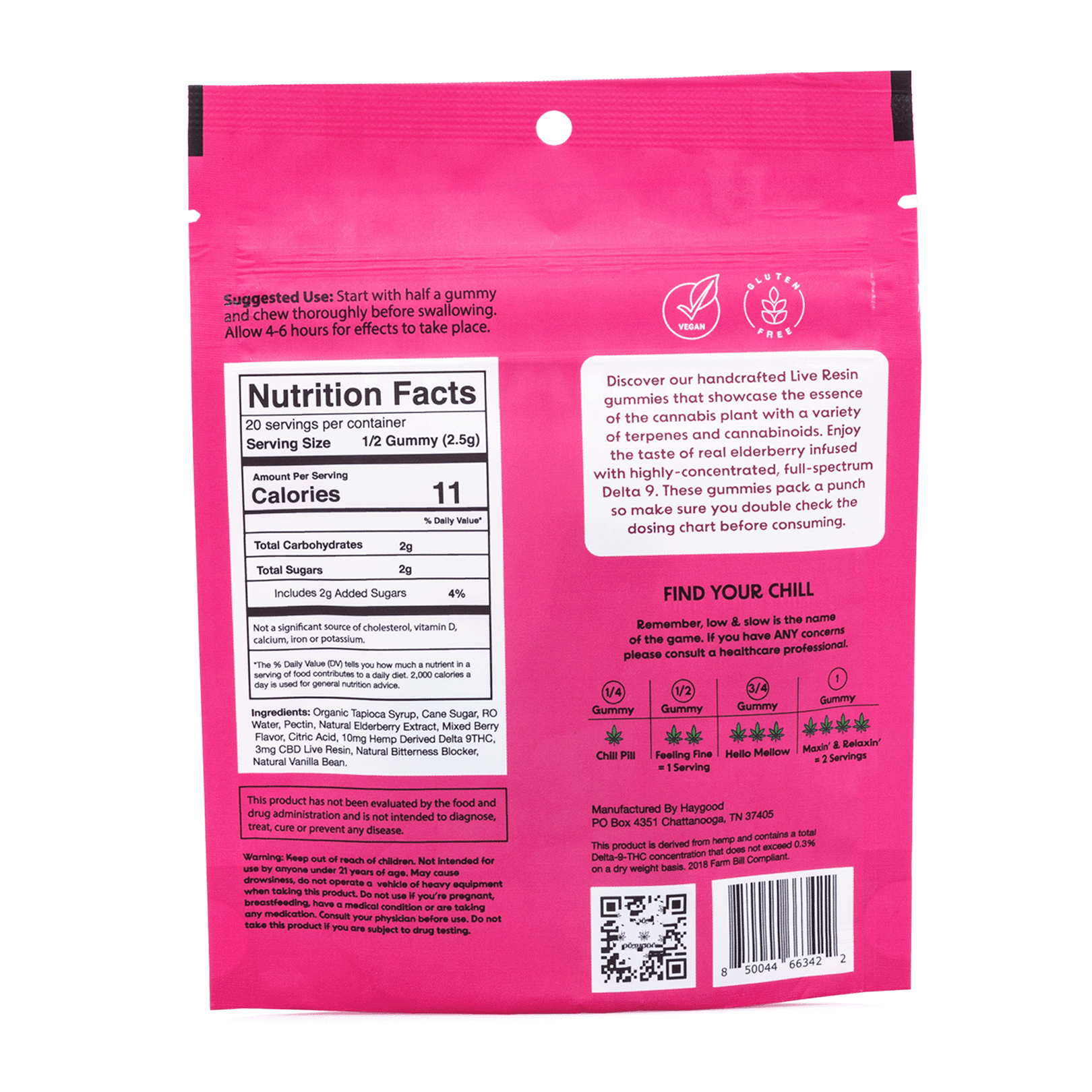 Made without artificial colors or fillers, each gummy contains just 4 grams of sugar and 20 calories. Haygood’s commitment to quality is evident from farm to final product, with third-party lab testing on every batch to verify potency, consistency, and compliance with federal hemp regulations.