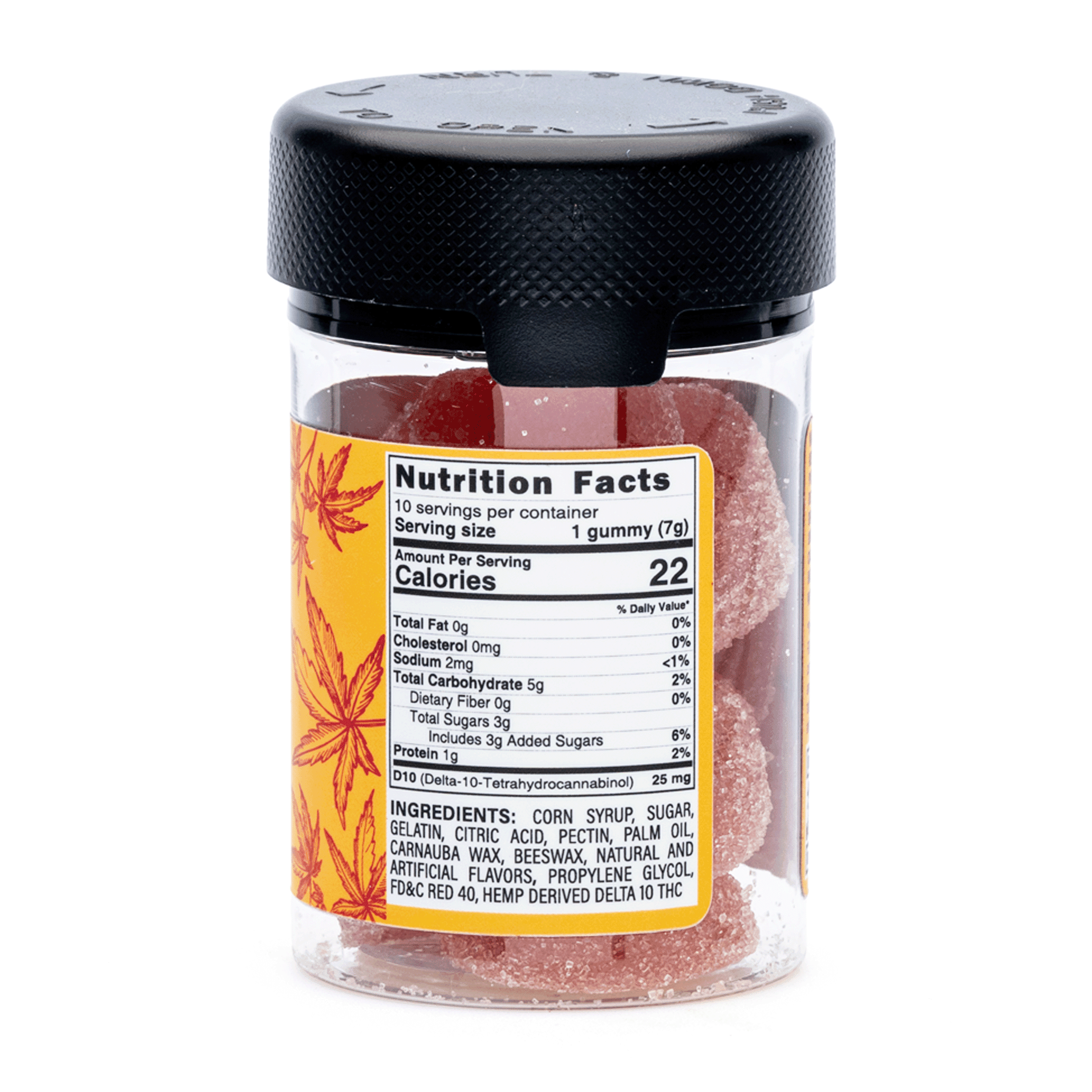 Contains 10 pieces, each containing 25 mg of Delta 10 THC