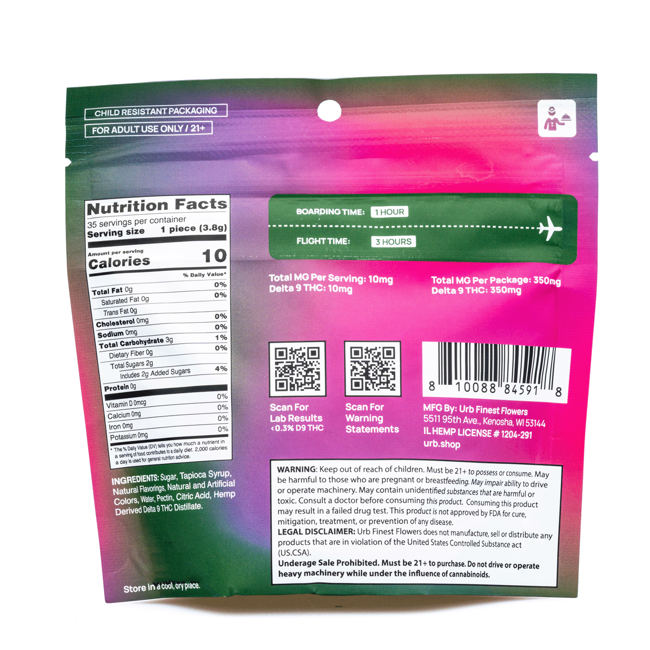 Contains 35 pieces, each with 10 mg of Hemp-Derived Delta 9 THC
