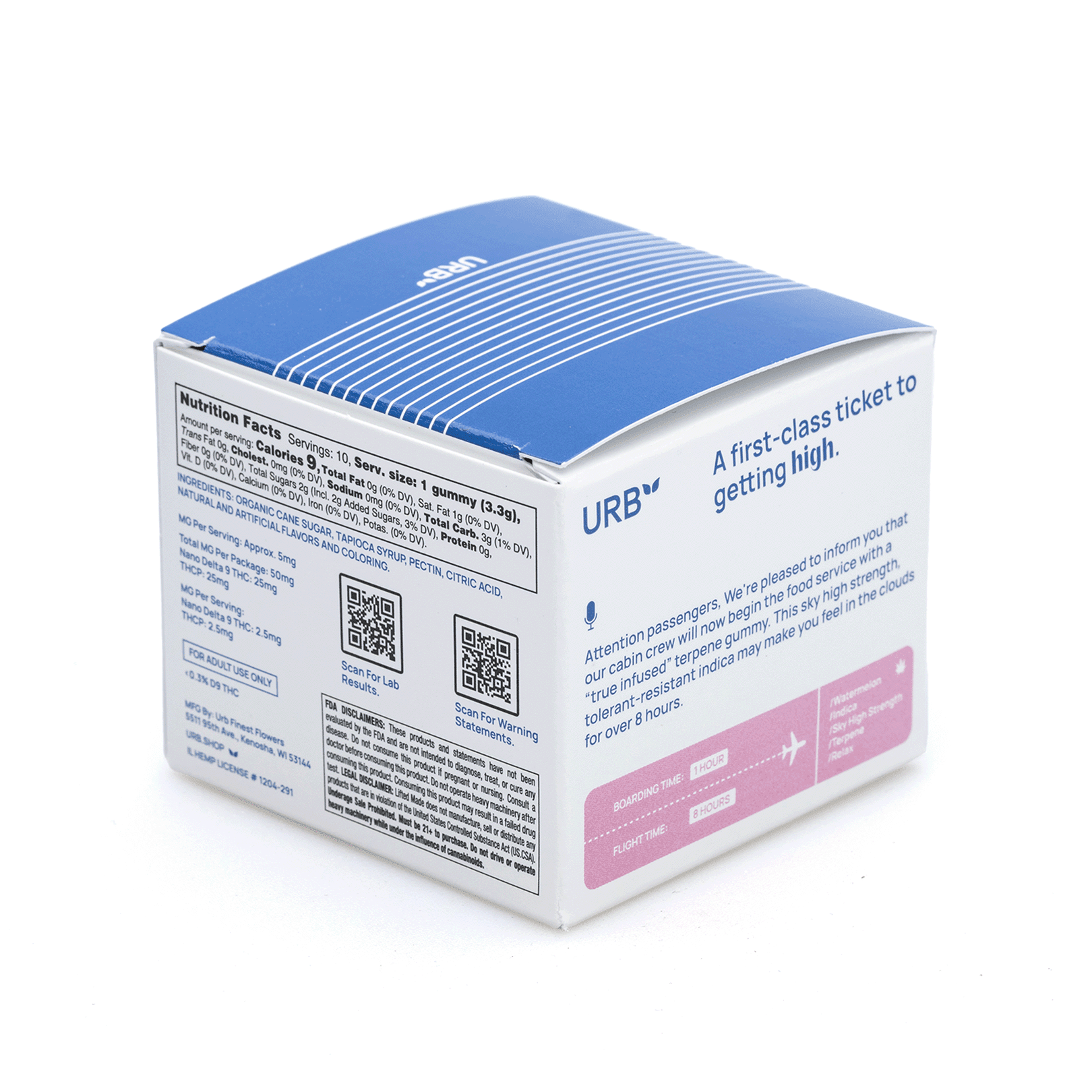 Urb THCP / Delta 9 Mile High Skybites – Watermelon Juice mellows and relaxes the mind any time of day with a juicy sweet burst of invigorating melon. This euphoric bliss is the result of a potent dose of nano Delta 9 and THCP paired with delicious natural terpenes. Each gummy has only 9 calories and 2 grams of sugar. So, get ready for take-off completely guilt-free.