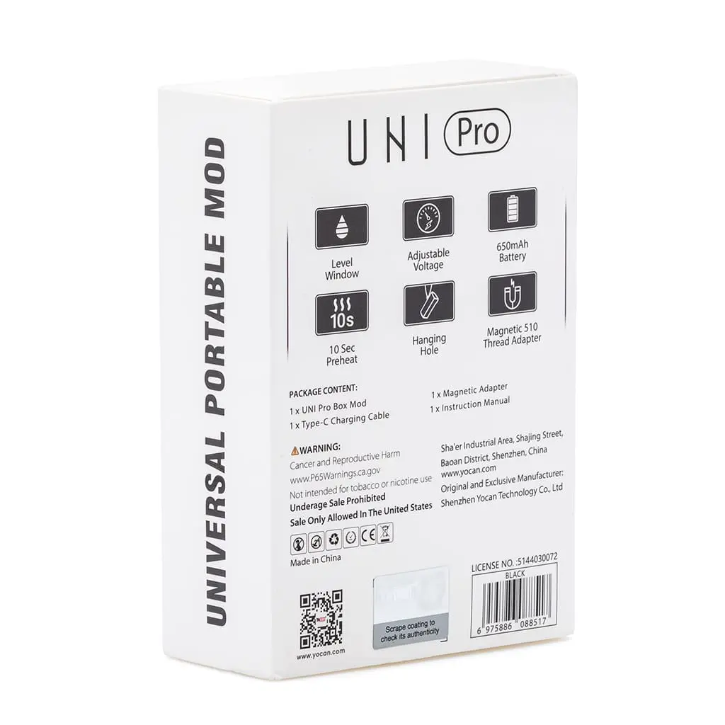 The Yocan UNI Pro Box Mod is outfitted with a 650mAh battery giving you more than enough battery power for casual vaping sessions. So, what are you waiting for? Make sure you check out the Yocan UNI Pro Box Mod now and be the first to experience professional on-the-go cartridge vaping!