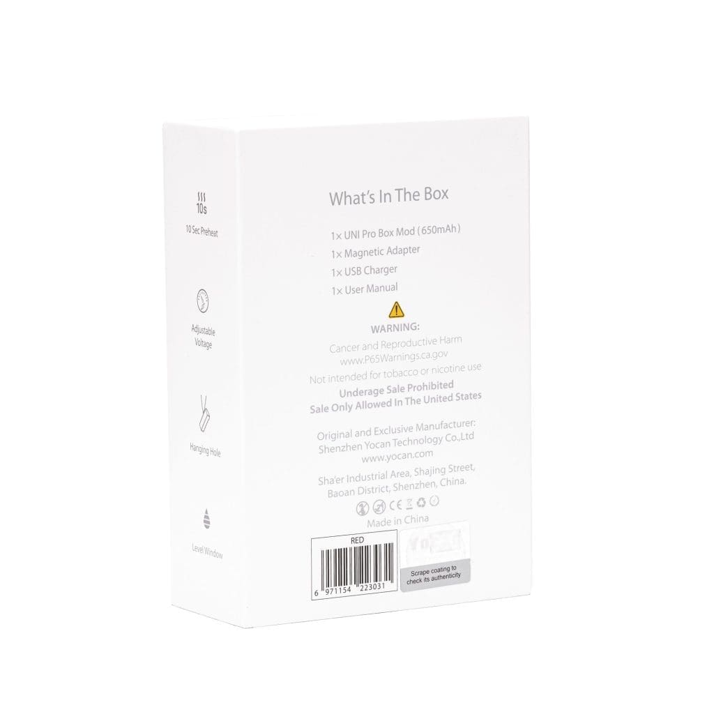 The Yocan UNI Pro Box Mod is outfitted with a 650mAh battery giving you more than enough battery power for casual vaping sessions. So, what are you waiting for? Make sure you check out the Yocan UNI Pro Box Mod now and be the first to experience professional on-the-go cartridge vaping!